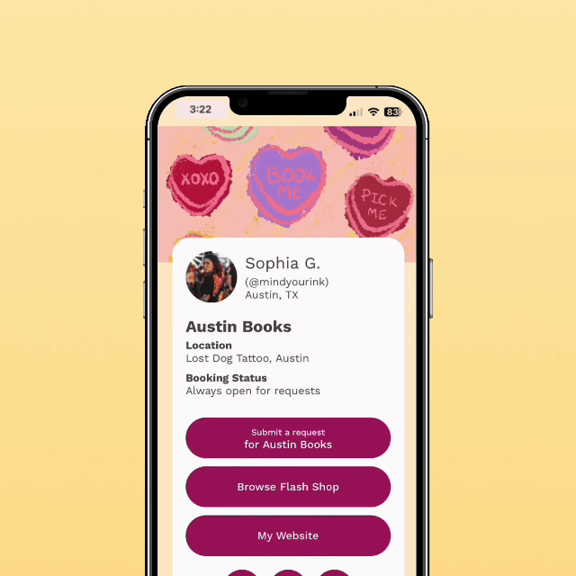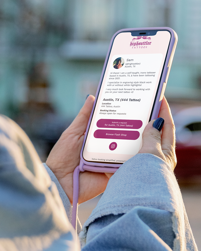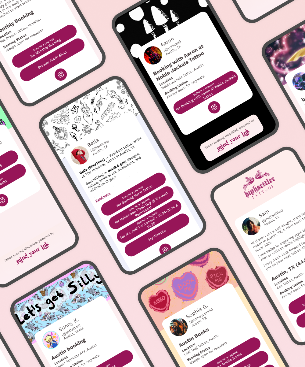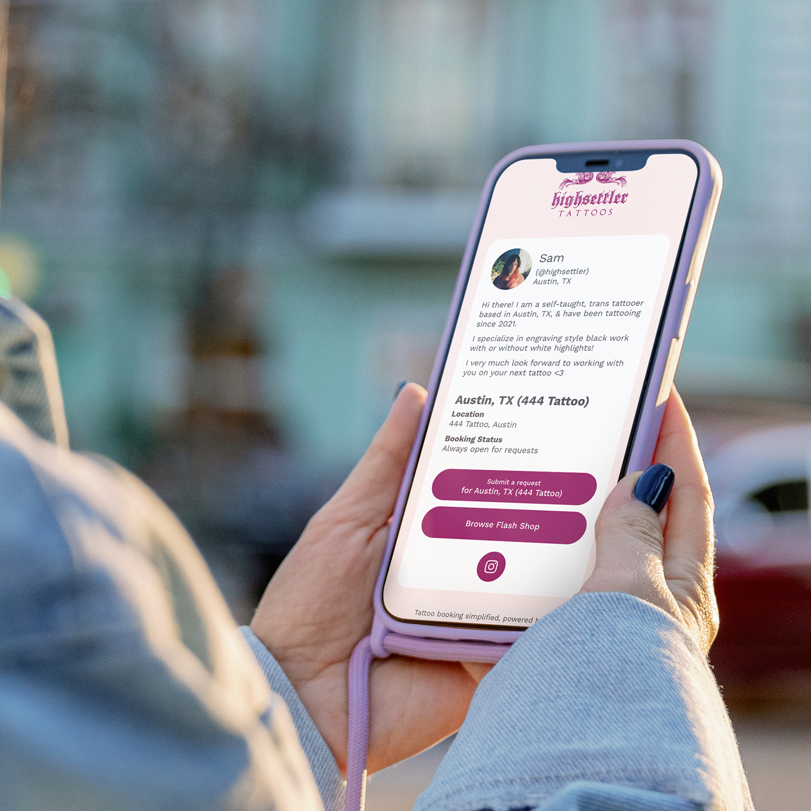 Replace link-in-bio clutter with your own professional artist page. Share booking windows, flash shop, social links, consent forms, and more, all from one custom URL.
